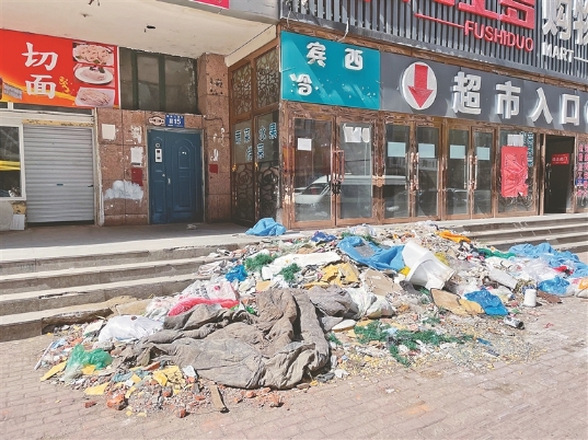 “這么大一堆垃圾就堆在單元門前,每天都得繞著走,天氣一熱一陣陣臭味,希望有人能管一管?!?月11日,讀者荷和向本報(bào)反映,哈爾濱市道外區(qū)南極三道街副15號(hào)單元門前有一堆垃圾,一個(gè)月無(wú)人清掃,而且每天都在增加,十分影響居民的出行和周邊環(huán)境。記者走訪了解到,垃圾是由于商家遷出、沒有及時(shí)清理造成的。目前,城管局和商家承諾,會(huì)及時(shí)進(jìn)行清理。