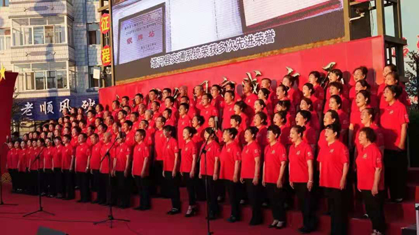 在歌聲中重溫百年歷程,追尋紅色記憶;在歌聲中砥礪無悔初心,汲取奮進力量。塔河縣廣大職工群眾在縣新時代文明實踐廣場以大合唱的方式縱情高歌,用滿腔的熱忱唱出了對黨的熱愛,對偉大祖國的贊美。由塔河縣森林之聲合唱團表演的曲目《祖國頌》《我愛你中國》拉開了演出的序幕,瞬間就調(diào)動了人們的情緒,激發(fā)了人們的愛國豪情。《不忘初心》《走向復興》《強軍戰(zhàn)歌》《忠誠于黨》等一首首經(jīng)典曲目表達了塔河兒女對黨的忠誠與熱愛,展現(xiàn)了塔河人奮發(fā)有為、積極向上的良好精神風貌。