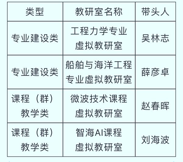 黑龍江經濟網訊(黑龍江日報全媒體見習記者董廣碩 商祺)近日,教育部公布了首批虛擬教研室建設試點名單,哈爾濱工程大學吳林志教授牽頭的“工程力學專業(yè)虛擬教研室”、薛彥卓教授牽頭的“船舶與海洋工程專業(yè)虛擬教研室”、趙春暉教授牽頭的“微波技術課程虛擬教研室”以及劉海波教授牽頭的“智海AI課程虛擬教研室”等4個項目獲批,入選數量居全國高校前列。黃益旺教授牽頭的“水聲工程虛擬教研室”獲批黑龍江省虛擬教研室建設項目。