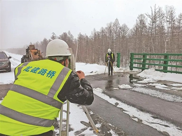嘉湯公路起于伊春市嘉蔭口岸、止于湯旺縣,路線全長94.286公里,設(shè)計時速80公里,按照雙向四車道一級公路技術(shù)標(biāo)準(zhǔn)進行改擴建。由于公路地處高寒地區(qū),原公路涉及長距離的多年凍土路段,多處凍土深度達(dá)到20多米,直至巖層?!盀榱丝朔鐾谅范魏笃谌诔?,我們采取了兩個辦法。針對不太深的凍土層,先挖除凍土,后續(xù)再換填砂礫或片石處理,沉降一年后再進行路面施工;針對凍土層較深的路段,我們采取‘以橋代路’方式跨越凍土帶?!眹兰问a至湯旺河段公路改擴建工程建設(shè)指揮部副指揮馮昌龍介紹說。