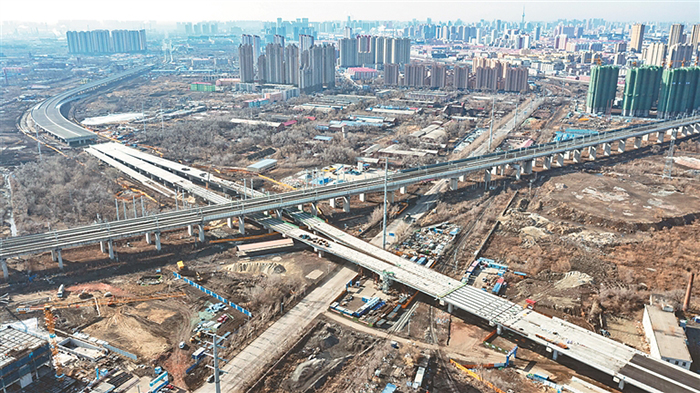北門街高架建設(shè)現(xiàn)場。 黑龍江日報(bào)全媒體記者 邢漢夫攝