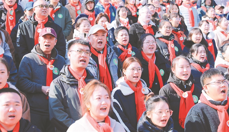 市民在活動(dòng)現(xiàn)場(chǎng)齊“喊江”。 本報(bào)記者 劉心揚(yáng)攝