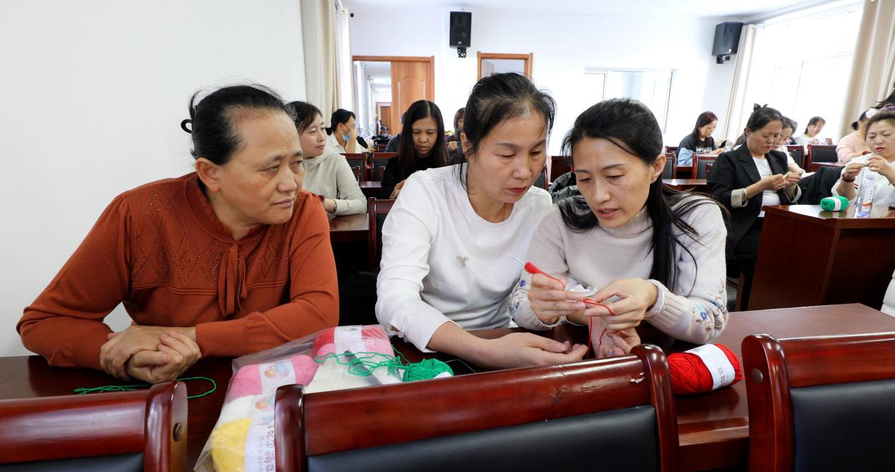 培訓特邀大興安嶺技師學院毛線鉤織技藝講師,采用理論講解與現(xiàn)場實操相結合的方式,圍繞編織的基礎知識、圖案設計、色彩搭配技巧、針法運用等內容進行了全面細致的講解。培訓班上,老師們手把手教授學員分線、鉤針等關鍵技巧,并針對學員們在操作過程中遇到的問題,進行一對一的耐心指導,確保每一位學員都能跟上教學進度,掌握編織要領。