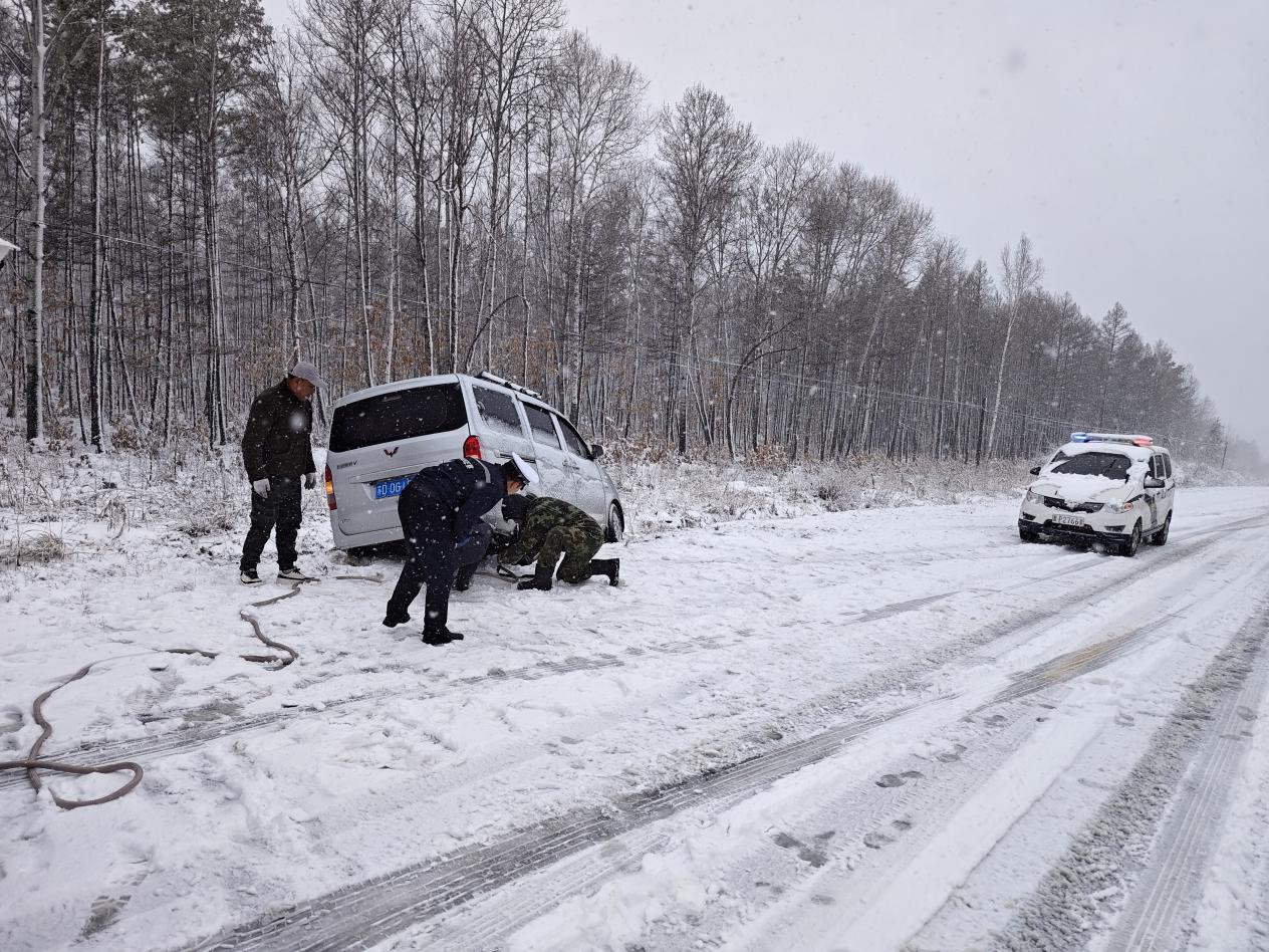 黑龍江經(jīng)濟(jì)網(wǎng)訊(張宇 記者馬朝林)4月24日,呼瑪縣突降大雪,呼瑪縣公安局白銀納派出所接到群眾報(bào)警求助,稱在白銀納鄉(xiāng)附近,駕駛的小型汽車因雪天路滑開進(jìn)路溝中無(wú)法脫困,請(qǐng)求民警幫助。接警后,民警立即核實(shí)被困情況,聯(lián)系專業(yè)人員攜帶救援設(shè)備趕往現(xiàn)場(chǎng)救助。