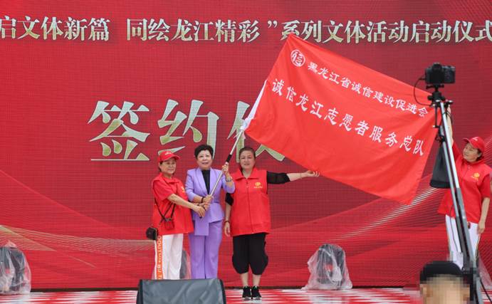 在誠信龍江志愿服務總隊成立儀式上,張波會長莊重地將象征“奉獻、友愛、互助、進步”精神的“誠信龍江志愿者服務總隊”隊旗,授予首任隊長。這面旗幟的傳遞,標志著一支服務社會、傳播誠信理念的專業(yè)志愿隊伍正式啟航。未來,志愿者們將深度融入系列文體活動的組織、服務與宣傳,以行動詮釋志愿精神,用熱忱擦亮“誠信龍江”品牌,為活動成功舉辦和誠信文化播撒注入強勁的志愿力量。