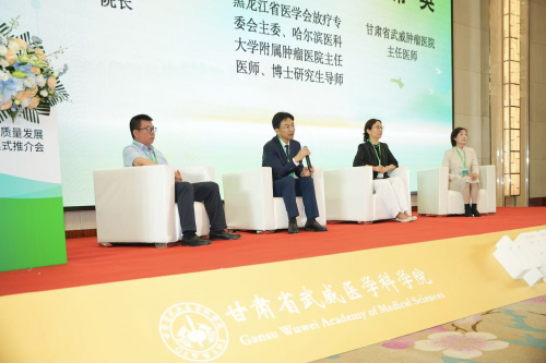 黑龍江省醫(yī)學(xué)會(huì)放療專委會(huì)主委、哈爾濱醫(yī)科大學(xué)附屬腫瘤醫(yī)院主任醫(yī)師、博士研究生導(dǎo)師張?jiān)破G教授,哈爾濱醫(yī)科大學(xué)附屬腫瘤醫(yī)院胸部放療二科主任醫(yī)師、博士研究生導(dǎo)師王春波教授,北大荒集團(tuán)總醫(yī)院腫瘤內(nèi)三科主任醫(yī)師高峰教授,哈爾濱醫(yī)科大學(xué)附屬腫瘤醫(yī)院研究員、博士研究生導(dǎo)師白彥靈教授,黑龍江省醫(yī)院放療科主任、碩士研究生導(dǎo)師張春東教授,哈爾濱醫(yī)科大學(xué)附屬第二醫(yī)院放療科主任醫(yī)師、碩士研究生導(dǎo)師王景璐教授;中國南航集團(tuán)文化傳媒股份有限公司領(lǐng)導(dǎo)層經(jīng)營班子成員董衛(wèi)軍,中國人壽“百萬醫(yī)療+重離子就醫(yī)綠色生命通道”項(xiàng)目負(fù)責(zé)人蔣偉,以及甘肅省武威腫瘤醫(yī)院院長葉延程及相關(guān)工作負(fù)責(zé)人參加本次會(huì)議。
