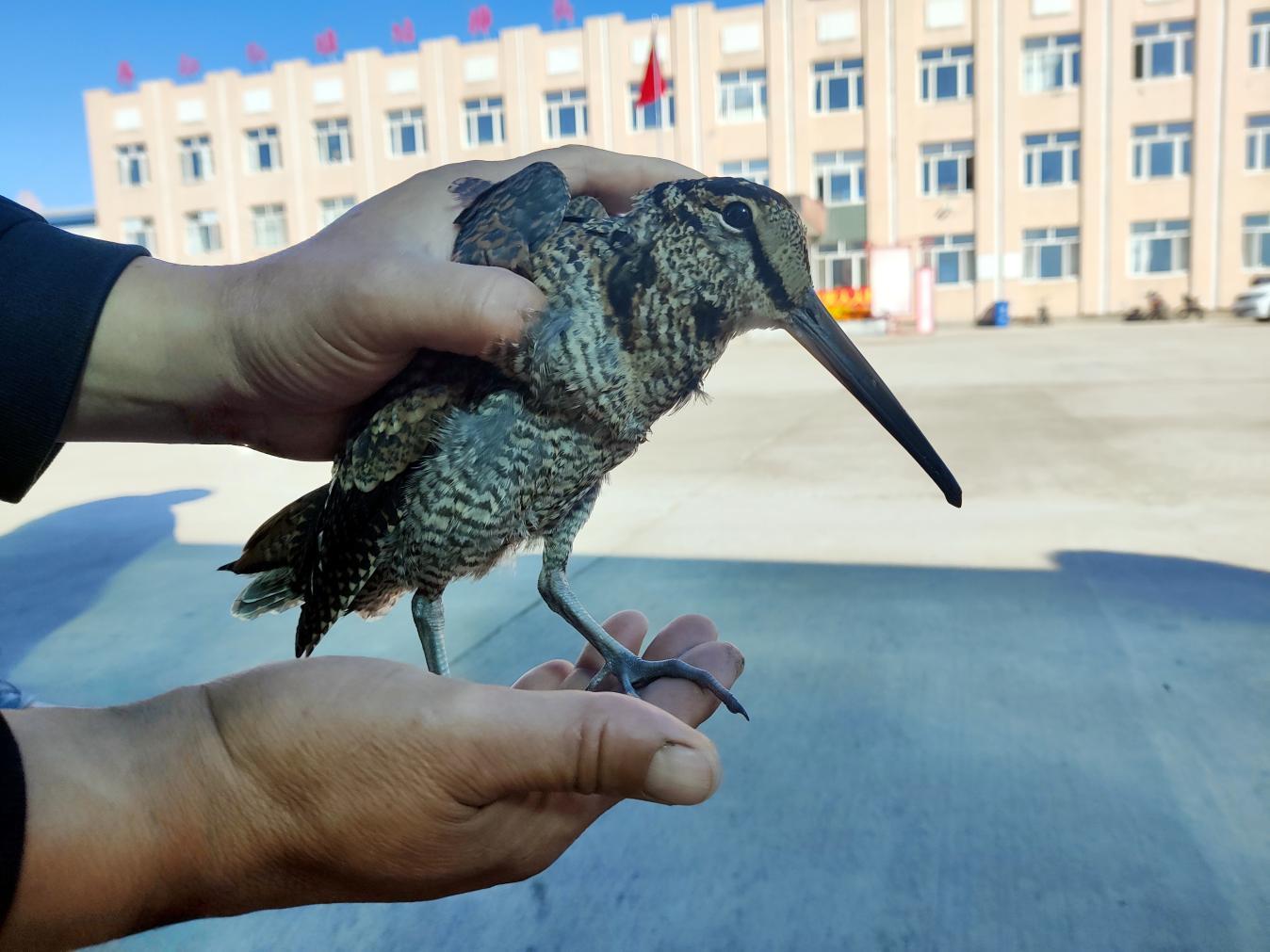 新林林場職工到大河邊樹叢放生丘鷸(郭仁峰 攝 )