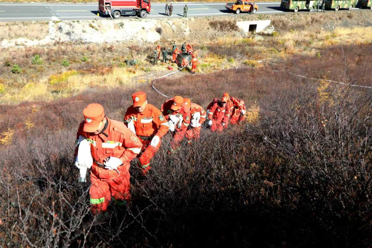 阿木爾林業(yè)局“以水滅火”中隊(duì)參加綜合演練,隊(duì)員攜帶水帶向“滅火點(diǎn)”挺進(jìn)(王力 攝)