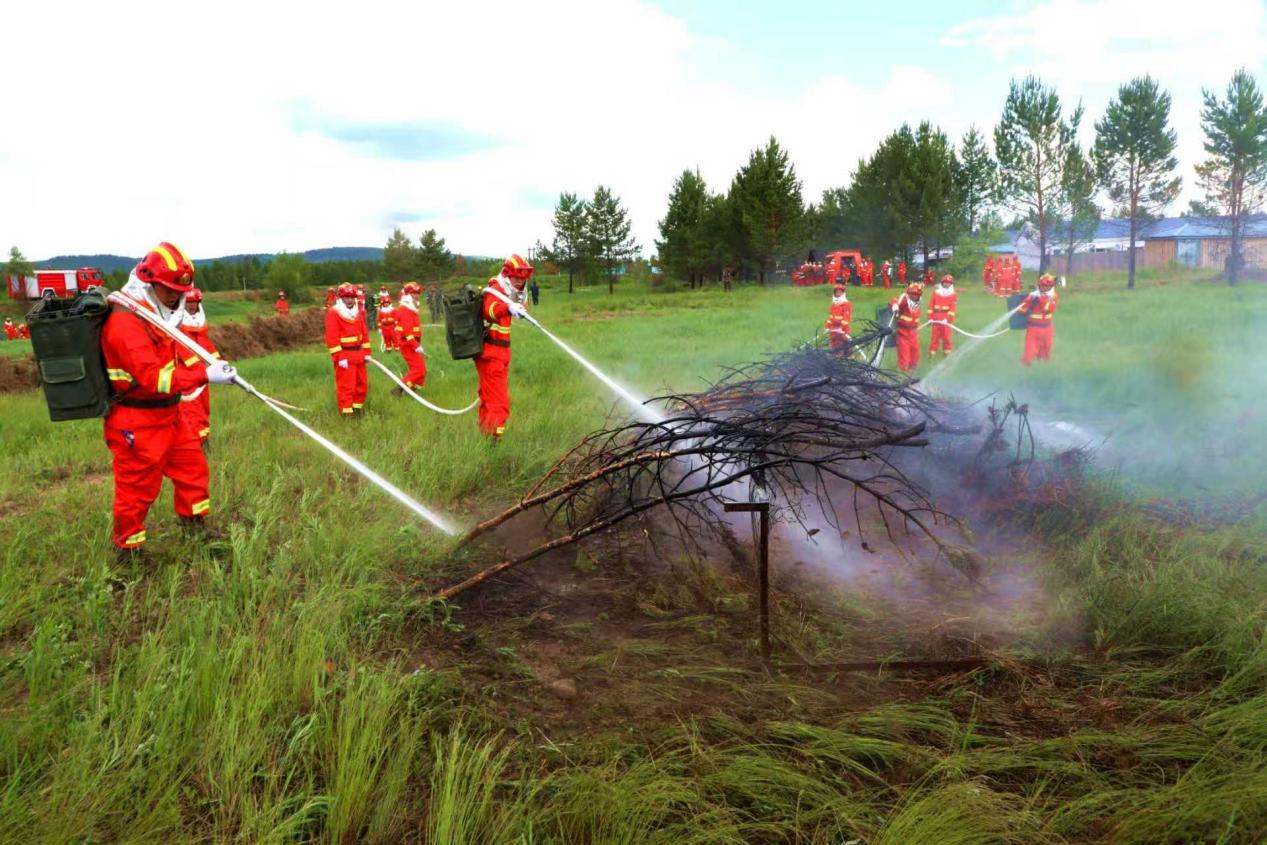 阿木爾林業(yè)局“以水滅火”中隊(duì)模擬實(shí)戰(zhàn)演練撲滅火點(diǎn)(王力 攝)