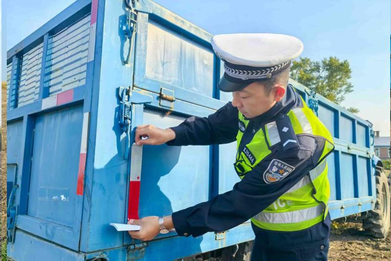 黑龍江經(jīng)濟網(wǎng)訊(李寶 劉昌龍 記者梁新立)9月23日,五大連池市公安局反恐與交巡特警大隊持續(xù)深化農(nóng)用車“亮尾”行動,以“嚴(yán)管控、廣宣傳”的工作思路,全面加強秋收期間農(nóng)村道路交通安全管理,有效預(yù)防和減少因農(nóng)用車尾部標(biāo)識不清引發(fā)的夜間交通事故,為群眾秋收時節(jié)出行安全點亮“警示燈”。