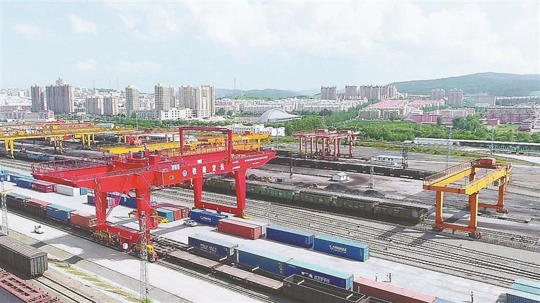 6日上午,百年口岸綏芬河鐵路車站換裝貨場內(nèi),塔吊在高效有序地對進(jìn)出境貨運(yùn)列車進(jìn)行著換裝作業(yè)。