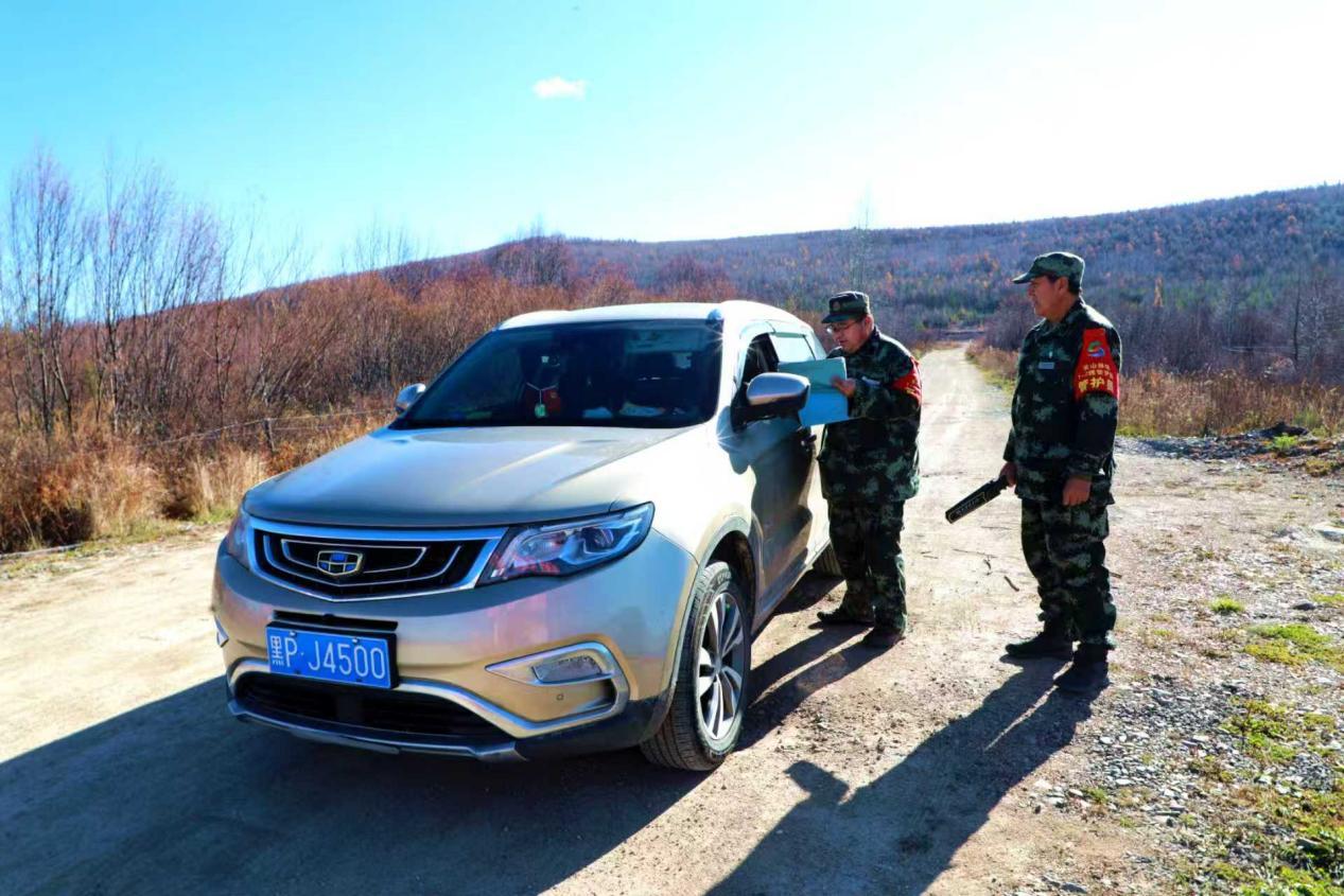 阿木爾林業(yè)局1—2線的趙鳳歧、趙焱父子管護員,對入山車輛和人員進行檢查登記(王力 攝)