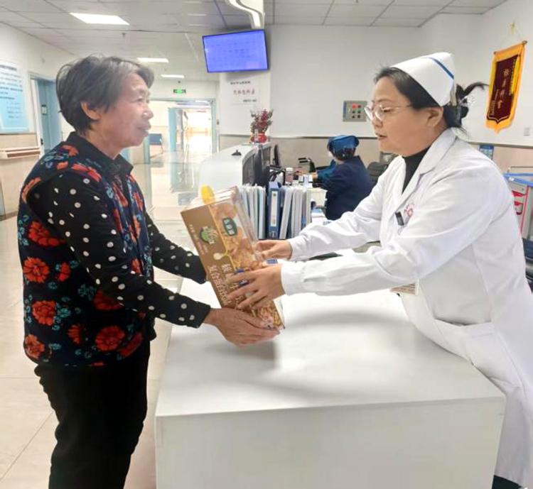 禮品雖小,情意濃重。開展活動期間,醫(yī)護(hù)人員們帶著精心準(zhǔn)備的小禮品,走進(jìn)每一位60歲以上老年患者的病房。這些小禮品雖然價格并不昂貴,但卻飽含著對患者的深深祝福。柔軟舒適的保暖襪,為患者在漸冷的霜降時節(jié)增添一份溫暖;營養(yǎng)豐富的滋補(bǔ)品,助力患者增強(qiáng)身體抵抗力;寓意吉祥的平安符,寄托著對患者早日康復(fù)的美好期許。當(dāng)醫(yī)護(hù)人員將一份份小禮品送到患者手中時,患者們的臉上都洋溢著驚喜與感動的笑容,紛紛對科室的貼心關(guān)懷表示感謝?;颊邉⒁碳拥卣f:“在這個特殊的節(jié)日里,收到你們送的禮物,心里特別溫暖”。