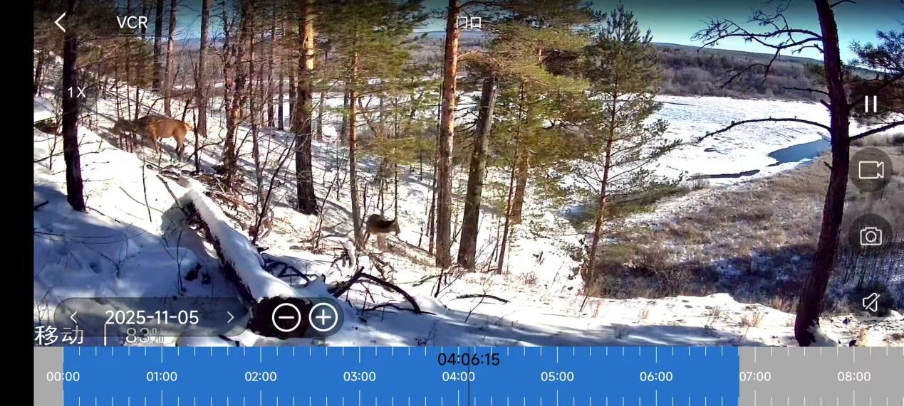 監(jiān)控畫面中,狍子時(shí)而低頭啃食積雪下的草本植物與木本嫩枝,時(shí)而抬頭警覺張望,盡顯食草動(dòng)物的溫順靈動(dòng)。猞猁則步伐穩(wěn)健,目光銳利卻不張揚(yáng),構(gòu)成了一幅難得的野生動(dòng)物同框畫卷。作為東北林區(qū)常見的野生動(dòng)物,狍子能耐受-60℃的嚴(yán)寒,而猞猁的出現(xiàn),更印證了當(dāng)?shù)厣鷳B(tài)系統(tǒng)的完整性。