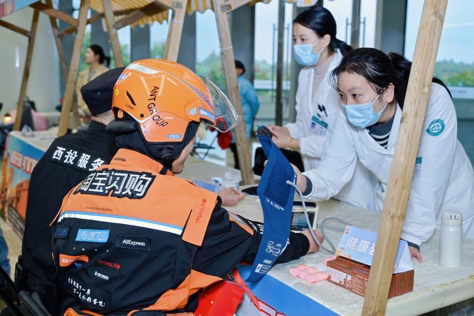 秋冬季節(jié)多發(fā)流感,全國各地、各級工會等主管部門聯(lián)合淘寶閃購,持續(xù)開展暖冬物資發(fā)放、免費(fèi)體檢等活動。在貴陽、銀川、溫州、武漢等城市,騎士日活動還設(shè)置了專門的體檢車,為騎士提供便捷的健康檢查,在南京、成都等地開展義診。