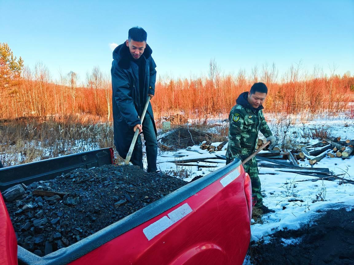 大烏蘇林場(chǎng)干部職工分工協(xié)作配送“暖心煤”(朱旭 攝)